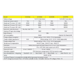 - PV Array:ย 720W – 12V / 1440W – 24V