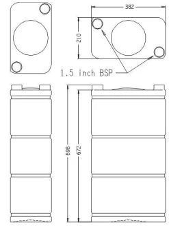 - Two integrated 40mm (1.5 Inch Female BSP) threaded connections can accept a wide variety of standard threaded pipe fittings