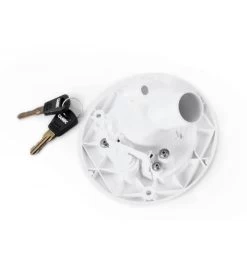Lockable Water Filler Left Hand Hinge – White. Will fit 85mm diameter hole from previous CAMEC / VECAM water filler.