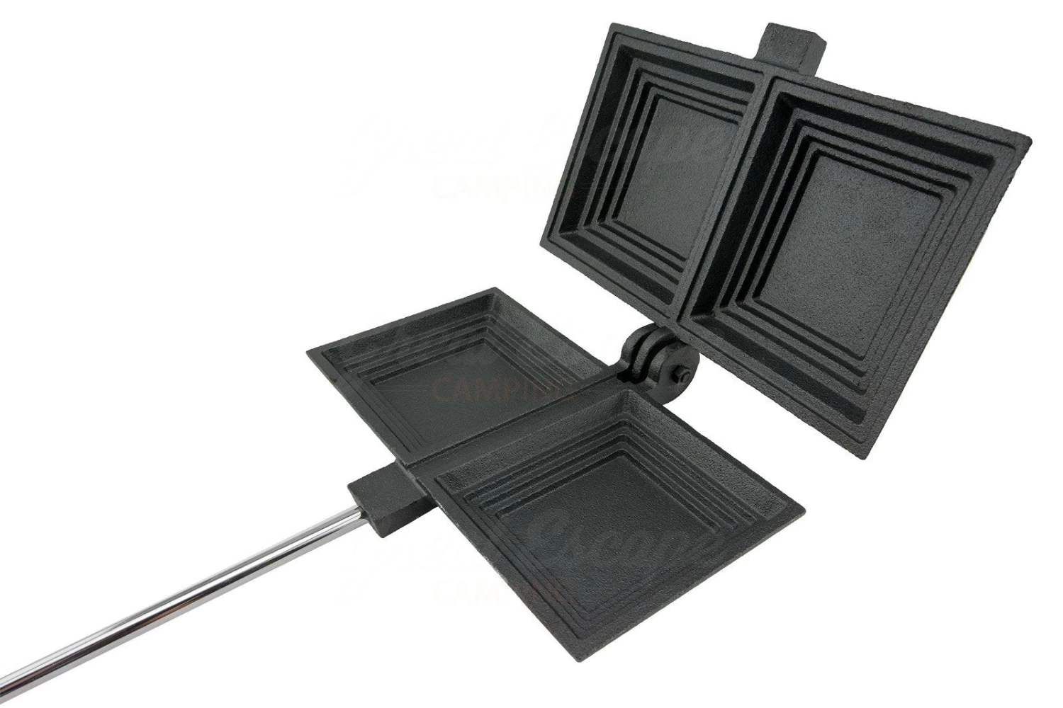 Cook two full-size jaffles at once, crusts and all, with the Jumbo Double Jaffle Iron from Campfire