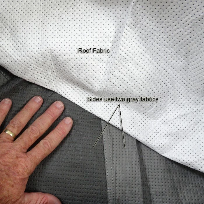 - Top panel is made of Olefin HD™ fabric. This new proprietary fabric has outperformed other leading roof materials and beads water on contact. Some water may penetrate the cover in heavy rains.