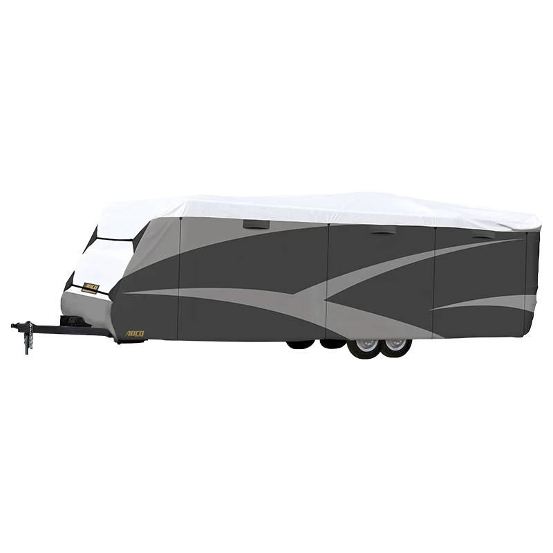 Backed by a huge 3-year warranty, the ADCO Designer Series Olefin HD™ RV Cover is available to suit Camper Trailers, Caravans, Pop Tops and Motorhomes. They’re designed for high sun exposure, high moisture, long term storage and even snow, making it the most durable cover on the market! It features superior UV stabilised and breathable fabric that blocks out 99.8% of the suns damaging UV rays. On the Caravan, Pop Top and Motorhome models, there are zippered panels along one side. These allow you access to the interior of your RV whilst the cover is on, and because of the eyelets on these panels, they can also double as an awning!