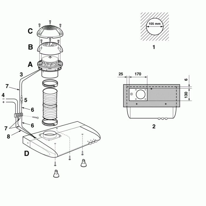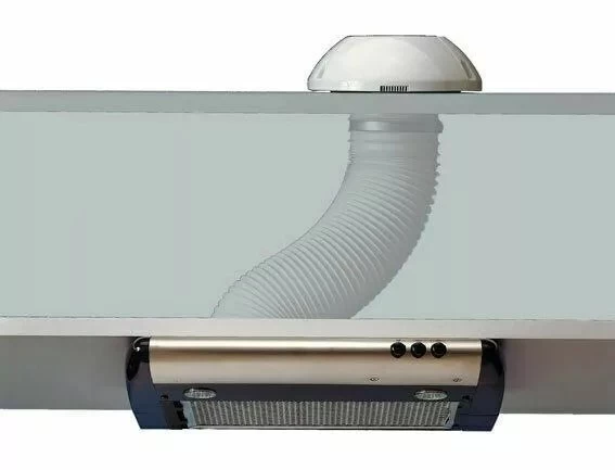 This new attractively shaped cooker hood with its connectible 2-stage fan ensures quick and effective remedy. It features extremely efficient power. The 12 Volt motor is integrated in the roof dome (not in the appliance itself), and is smaller than in previous models.