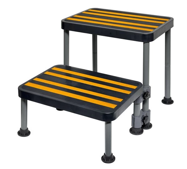 - The reinforced platforms are rated to 150kg, and the high visibility grip tape creates a slip-resistant surface that can be easily seen in low light situations. The included feet are made from hard-wearing plastic that won’t scuff on smooth surfaces, and are extra-wide to minimise sinking on soft ground and sand