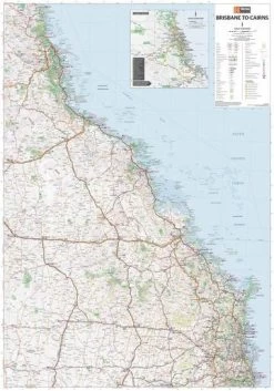 This Touring Map traverses Australia from Brisbane to Cairns (at a scale of 1:1,500,000) and features an additional Tourist Drives map (at a scale of 1:3,000,000). On the reverse side are CDB maps of Brisbane and Cairns as well as region-specific touring information for the Sunshine Coast, Gympie to Bundaberg, Bundaberg to Gladstone, Mackay and The Whitsundays, Townsville, the Cassowary Coast and Cairns.