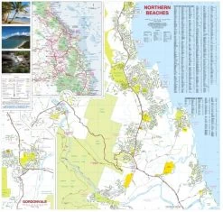 A map that offers comprehensive and detailed coverage of Cairns and the surrounding regions at a detailed scale of 1:22,500. There are maps of the northern beaches and Cairns on either side, with inset maps of Gordonvale, Edmonton, the Cairns region and the Cairns CBD.