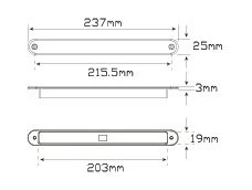 - Recessed – Mount onto flat surface horizontally. Push lamp and grommet into cutout (cut out 203mm x 19mm) in mounting surface, run wires through back and fix with screws. Products can also be mounted using surface mounting brackets sold separately